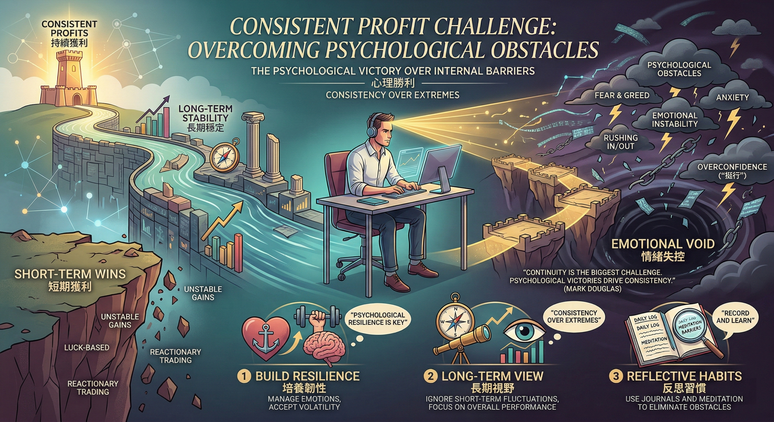 持續獲利的關鍵在於心理韌性。道格拉斯指出,交易者常因無法接受連續性而失敗。我曾因焦慮而在波動中頻繁進出,損害表現。後來,我透過SOP規劃和交易記錄克服障礙,專注於長期策略。這在區塊鏈的無休市況中尤為必要,持續波動考驗耐力。當心理障礙被清除,一貫獲利變得可行。