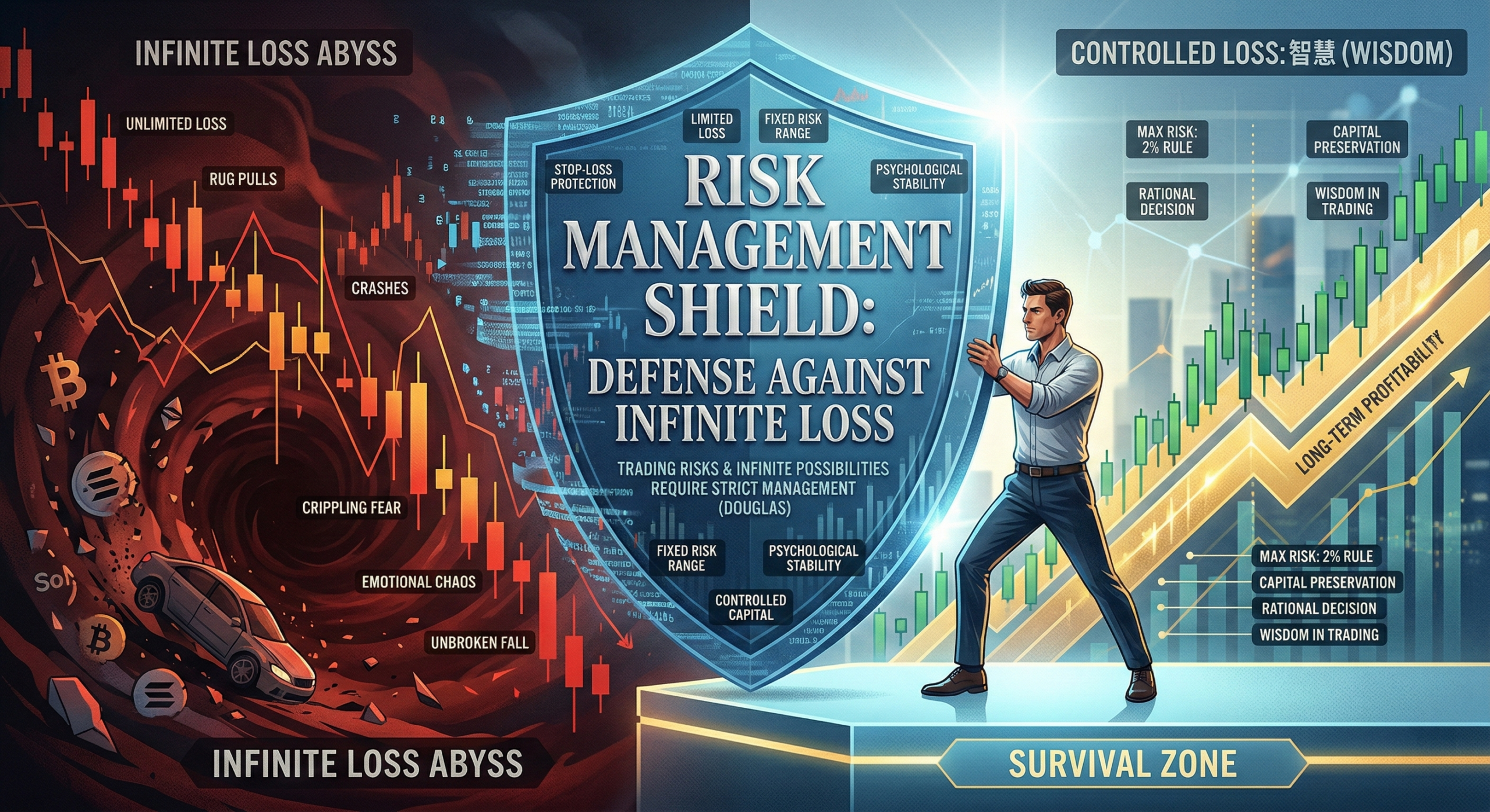 風險管理是防禦無限虧損的盾牌。道格拉斯指出,交易者常因獲利幻想忽略風險,但止損能將損失限制在可控範圍。我後來養成每筆交易必設止損的習慣,例如風險不超過總資金的2%,這在加密市場的劇烈波動中救了我多次。如果沒有止損,無限的可能性會放大恐懼,讓你無法理性決策。風險管理不僅保護資金,還維持心理穩定,讓你專注於長期獲利。